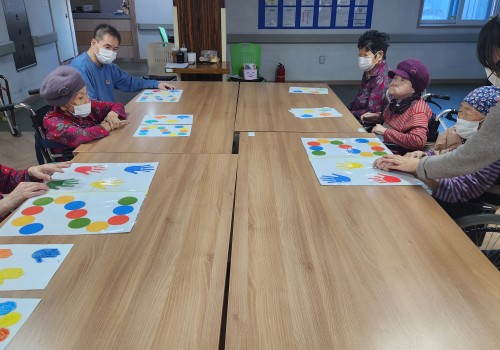 오늘은 실버미술 프로그램을 진행하였습니다. 알록달록 무지개 물고기를 색칠하고 만들어 보았습니다. 완성된 작품을 보고 매..