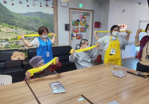 오늘은 실버체조 프로그램을 진행하였습니다. 마주보고 앉은 사람과 퍽을 주고 받으며 아이스 하키 게임을 즐겁게 참여하셨습..